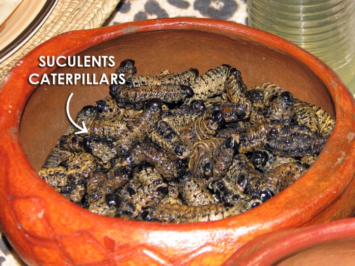 Els simpàtics vigilants d’un càmping ens van recomanar, veient que ens disposàvem a buscar lloc per sopar, que demanéssim, sobretot, caterpillar. Nosaltres, obedients i fidels a les recomanacions autòctones, vam demanar un bon plat de caterpillar per a compartir. No oblidarem mai la sensació de veure com aquell platet s’anava acostant a la taula. Interiorment pensàvem “que s’estigui equivocant, per favor!”. Quan ens vam adonar que els receptors érem nosaltres mateixos i que allò arribava a la nostra taula esperant ser menjat i que eren CUCS FREGITS no sabíem on ficar-nos. Vam acabar protagonitzant, a Zàmbia, aquell famós capítol del Mr. Bean al restaurant amb un problema similar amb l’steak tàrtar.