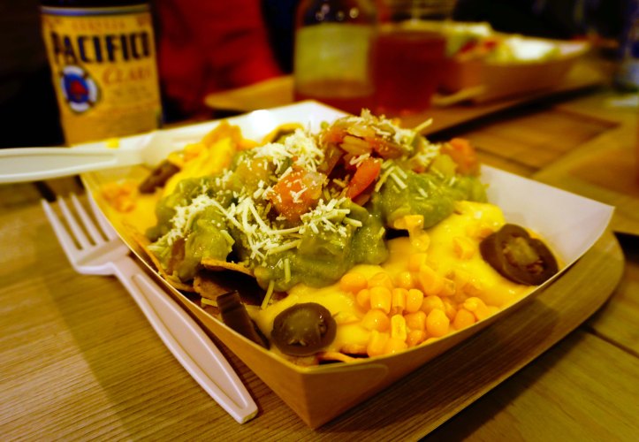 Assenyales al mostrador, esculls en tres passos el que vols i et munten el plat a l’instant. Fàcil i àgil. Provem tot el que tenim a l’abast, ben maridat amb unes cerveses Modelo, Pacífico i uns còctels Margarita Frozen de mango. No ens n’estem, repetim.